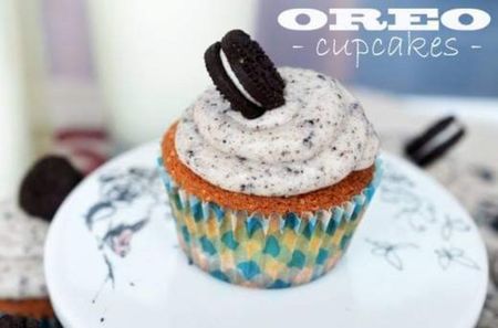 Incingem cuptorul la 180 si punem hartiutele pentru muffins in tava speciala. Amestecam cu mixerul unutul si 150g zahar pana avem o spuma si zaharul nu se mai simte aproape delog. Adaugam galbenusurile si amestecam din nou. Adaugam apoi jumatate din cantitatea de faina, cernuta impreuna cu sarea si praful de copt, amestecam. Punem laptele si vanilia, amestecam din nou, apoi restul de faina si amestecam pana avem o compozitie omogena.Adaugam apoi albusurile batute spuma cu 200g zahar. Trebuie sa avem o spuma de albusuri foarte tare, pe care o amestecam folosind o spatula, ca sa nu scoatem aerul din compozitie. In fiecare forma punem cate un biscuite Oreo. Distribuim compozitia in forme, astfel incat sa fie ¾ pline. Eu folosesc intotdeauna pentru muffins si cupcakes o lingura pentru inghetata, ma ajuta sa dozez aluatul egal in fiecare muffin si…sa nu dau pe langa . Punem crema rece intr-unn pos si decoram cupcakes-urile. Mini-Oreo pentru decor sunt optionali, dar mie mi s-au parut absolut adorabili, deci…a fost musai-musai sa ii pun, in loc de cireasa de pe tort.