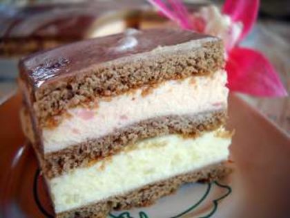crema: - 2 plicuri budinca de vanilie - 2 plicuri budinca de capsuni - 1 l lapte - 20 linguri zahar - 500 g Rama Maestro